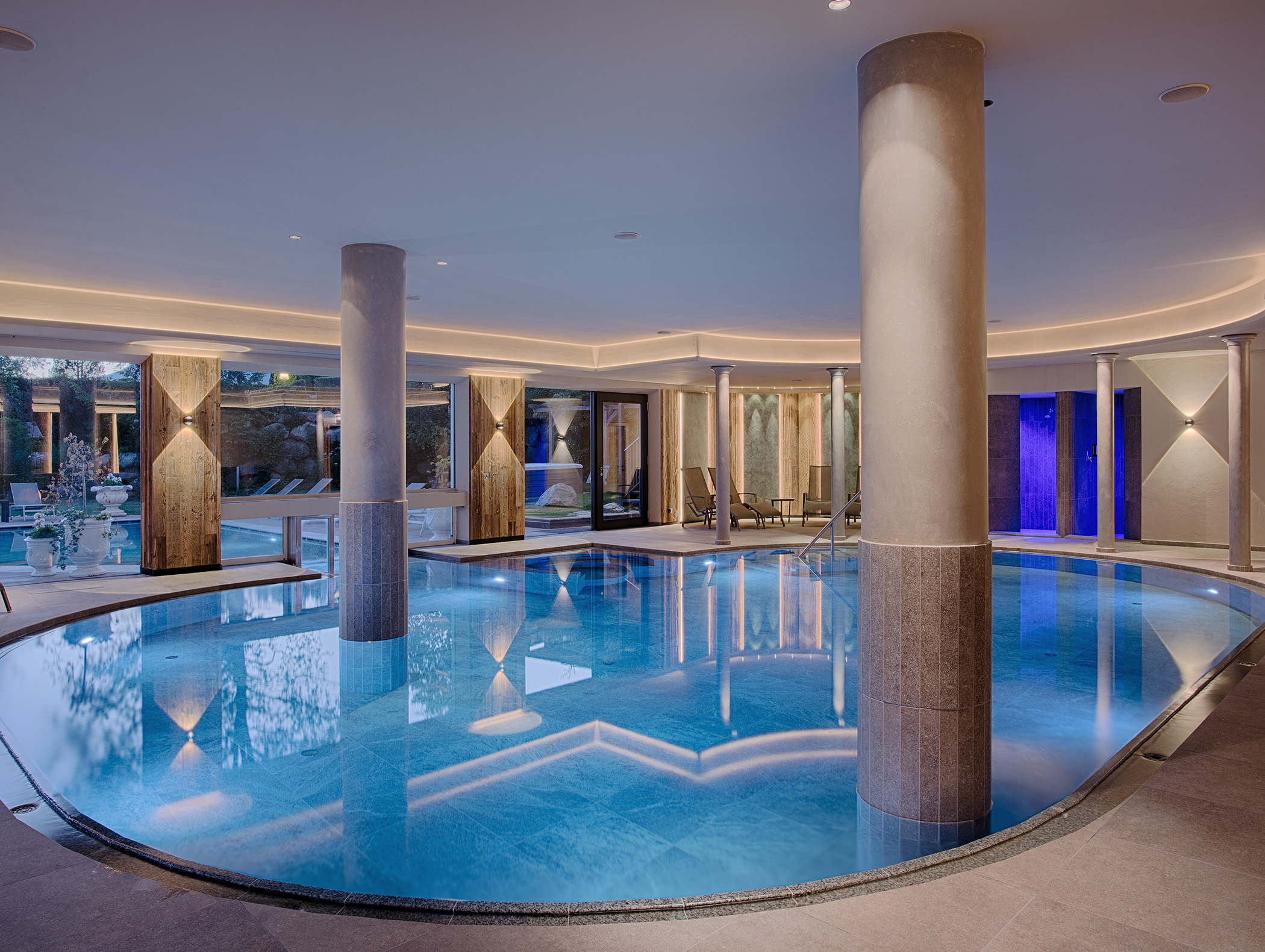 Cielo blu intenso, il piacevole calore dei raggi del sole, la magia delle stelle scintillanti e una vista su una splendida natura dalle mille sfaccettature, che, a seconda della stagione, offre panorami imbiancati di neve, verde intenso o dai mille colori. Nuotare, letteralmente, in direzione di Plan de Corones all’esterno, e, all’interno, ammirare i magici colori del tramonto che si rispecchiano nelle vetrate panoramiche. È questo che vi aspetta nelle piscine outdoor e indoor del nostro Hotel di Brunico.