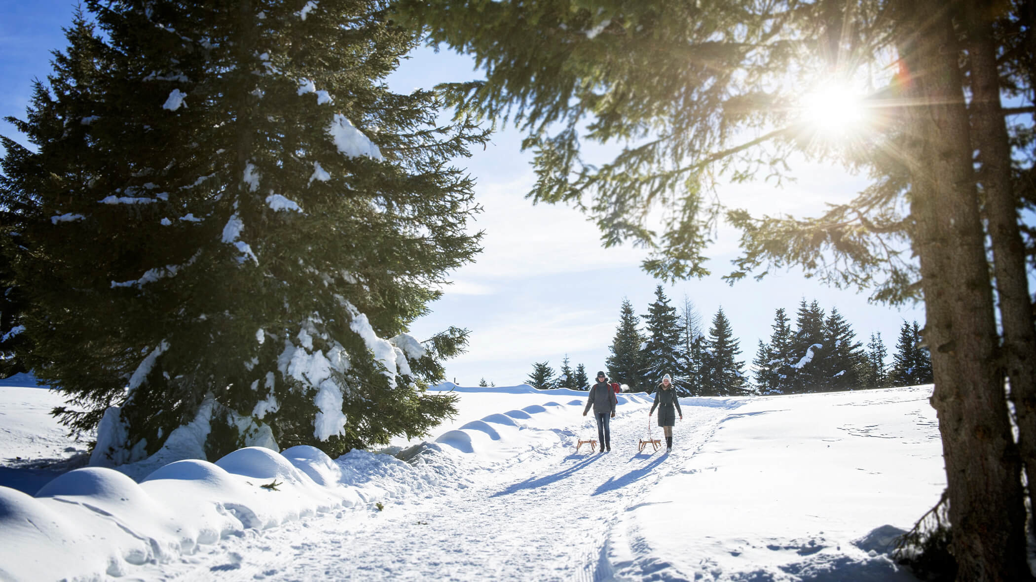 Leise knirscht der Schnee unter den Schuhen und begleitet die Wanderer auf ihrem Weg durch die winterliche Natur, während die klare, erfrischende Luft die Sinne belebt. Verschneite Wälder, idyllische Täler und stille Bergriesen strahlen im Winter eine ganz besondere Ruhe aus, die Herz und Seele berührt. Erkunden Sie das Winterwunderland mit unseren Insidertipps auf eigene Faust, oder begeben Sie sich gemeinsam mit unserem diplomierten Wander-Guide auf ein Abenteuer.
